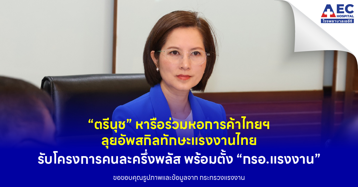 “ตรีนุช” ตั้ง “กรอ.แรงงาน” ร่วมหอการค้าไทยฯ ขับเคลื่อนงานเชิงรุก ชู 6 ข้อเสนอ Quick Big Win ให้เห็นผลภายใน 4 เดือน . วันที่ 20 ตุลาคม 2568 เวลา 10.00 น. นางสาวตรีนุช เทียนทอง รัฐมนตรีว่าการกระทรวงแรงงาน พร้อมด้วย พันตำรวจโท วรรณพงษ์ คชรักษ์ ปลัดกระทรวงแรงงาน ผู้บริหารระดับสูงกระทรวงแรงงาน และหน่วยงานที่เกี่ยวข้อง ให้การต้อนรับ ดร.พจน์ อร่ามวัฒนานนท์ ประธานกรรมการหอการค้าไทยและสภาหอการค้าแห่งประเทศไทย และคณะ ณ ห้องประชุม ศ.นิคม จันทรวิทุร ชั้น 5 กรมสวัสดิการและคุ้มครองแรงงาน อาคารกระทรวงแรงงาน . นางสาวตรีนุช เทียนทอง รัฐมนตรีว่าการกระทรวงแรงงาน เปิดเผยภายหลังหารือร่วมกับหอการค้าไทยและสภาหอการค้าแห่งประเทศไทย ว่า ในวันนี้ได้ร่วมกันหาแนวทางความร่วมมือ Upskill Reskill ทักษะแรงงานไทย ให้สอดคล้องกับตลาดแรงงาน และยกระดับแรงงานไทย โดยหอการค้าไทยและสภาหอการค้าแห่งประเทศไทย ได้เสนอให้ กระทรวงแรงงาน ยกระดับทักษะแรงงานร่วมกับภาคเอกชน โดยจัดตั้งความร่วมมือรัฐ-เอกชน-สถาบันการศึกษา . เพื่อยกระดับทักษะแรงงานให้ตรงความต้องการของอุตสาหกรรม โดยเน้นกลุ่มอาชีพที่ตลาดต้องการเร่งด่วน และขยายอัตราค่าจ้างตามทักษะฝีมือแรงงาน (Pay by skills) ตามประกาศคณะกรรมการส่งเสริมการพัฒนาฝีมือแรงงานให้ครบตามมาตรฐานฝีมือแรงงานแห่งชาติ ให้ครบ 280 สาขา จากที่ประกาศไว้ 129 สาขา และให้ความสำคัญกับการ Upskill, Reskill และ New skill เพื่อสร้างแรงงานที่มีทักษะฝีมือหลากหลาย (Multiskill) ให้สอดคล้องกับความต้องการของตลาดแรงงาน และเพิ่มผลิตภาพแรงงาน (Labour Productivity) สามารถลดต้นทุนและสร้างความสามารถในการแข่งขัน . นอกจากหอการค้าไทยและสภาหอการค้าแห่งประเทศไทย ได้เสนอให้ กระทรวงแรงงาน พิจารณาเรื่องการปรับอัตราค่าจ้างขั้นต่ำต้องเป็นไปตามหลักกฎหมายซึ่งบัญบัติไว้ในมาตรา 87 แห่งพระราชบัญญัติคุ้มครองแรงงาน พ.ศ.2541 อย่างเคร่งครัด ใช้กลไกคณะกรรมการค่าจ้าง (ไตรภาคี) การพิจารณาปรับค่าจ้างแบบจำเพาะหรือเฉพาะกลุ่มอาชีพ อาทิ กิจการโรงแรมควรต้องมีการศึกษาความพร้อม และรับฟังในส่วนต่างจังหวัด ในส่วนของร่าง พระราชบัญญัติคุ้มครองแรงงาน (ฉบับที่..) พ.ศ. …. ของพรรคประชาชน จำนวน 2 ฉบับ ได้เสนอว่าควรให้ภาคเอกชน สมาคมนายจ้าง ได้แสดงความคิดเห็นอย่างรอบด้าน เป็นธรรมทั้งฝ่ายนายจ้างและลูกจ้าง รวมทั้งไม่ให้ส่งผลกระทบต่อขีดความสามารถในการแข่งขันและภาพรวมเศรษฐกิจไทย พิจารณาทบทวนหลักเกณฑ์การวางหลักประกันในการนำเข้าแรงงานต่างด้าว ตลอดจน เสนอให้จัดตั้งศูนย์บริการเบ็ดเสร็จด้านแรงงาน (OSS) เพื่ออำนวยความสะดวกด้าน Visa & Work Permit คนต่